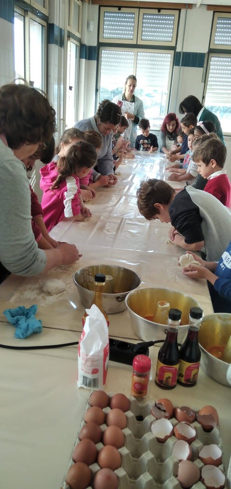 Aprendemos que os avós não deitavam comida fora e que com as sobras do pão faziam outras receitas. Neste dia fizemos um belo pudim com as sobras de pão do refeitório da nossa escola. É muito importante combater o desperdício alimentar para o Planeta salvar.