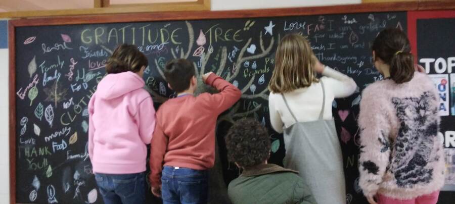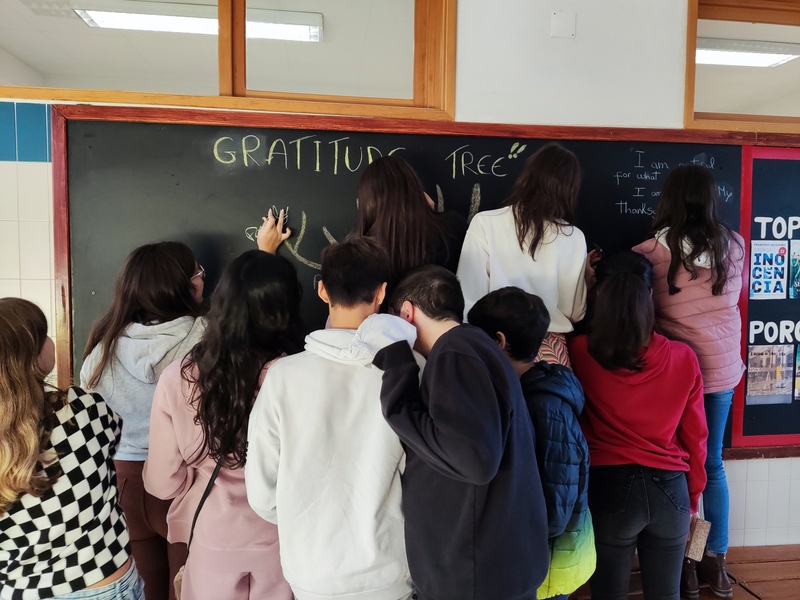 No âmbito da disciplina de Inglês, os alunos do 7ºA deram o “pontapé de saída” na construção da nossa Gratitude Tree (Árvore da Gratidão), tendo as restantes turmas deixado o seu contributo ao longo da semana.