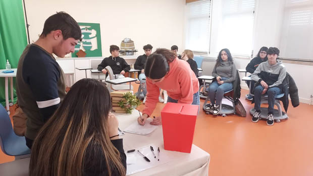 A sessão decorreu de forma participada, tendo os deputados apresentado, debatido, defendido e votado no Projeto de Recomendação que representará a nossa escola em Portalegre. Foram igualmente eleitos os 5 deputados (4 efetivos e 1 suplente) que irão defender as nossas medidas sobre o tema “Saúde Mental nos Jovens. Que desafios? Que respostas?”. Os deputados eleitos foram: Madalena Fernandes, Margarida Rodrigues, Eduardo Tomás, Joana Matos e Mariana Dias.