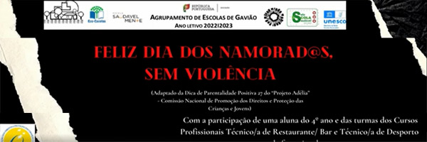 Considerando a importância do fortalecimento da relação Escola-Família, as turmas dos cursos Profissionais de Técnico(a) de Restaurante e Bar e Técnico(a) de Desportoe uma aluna do 4º ano produziram o vídeo “Feliz dia dos namorad@s, sem violência”.