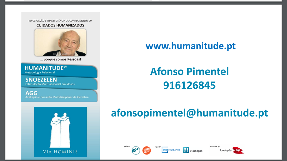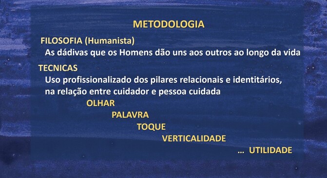 A palestra teve como objetivo a divulgação desta Metodologia que se foca na interação entre o cuidador e a pessoa cuidada (o toque, a palavra e o olhar).