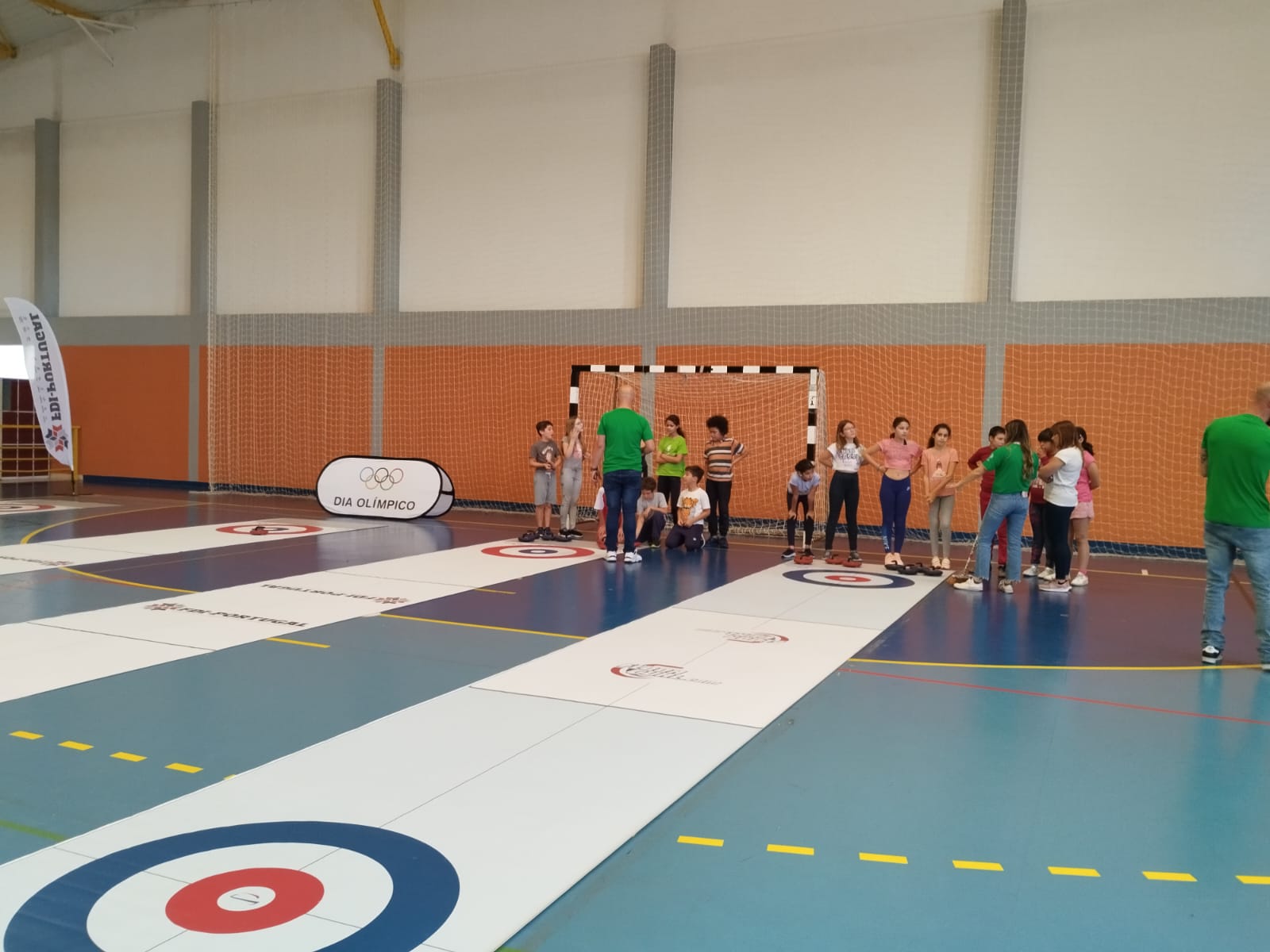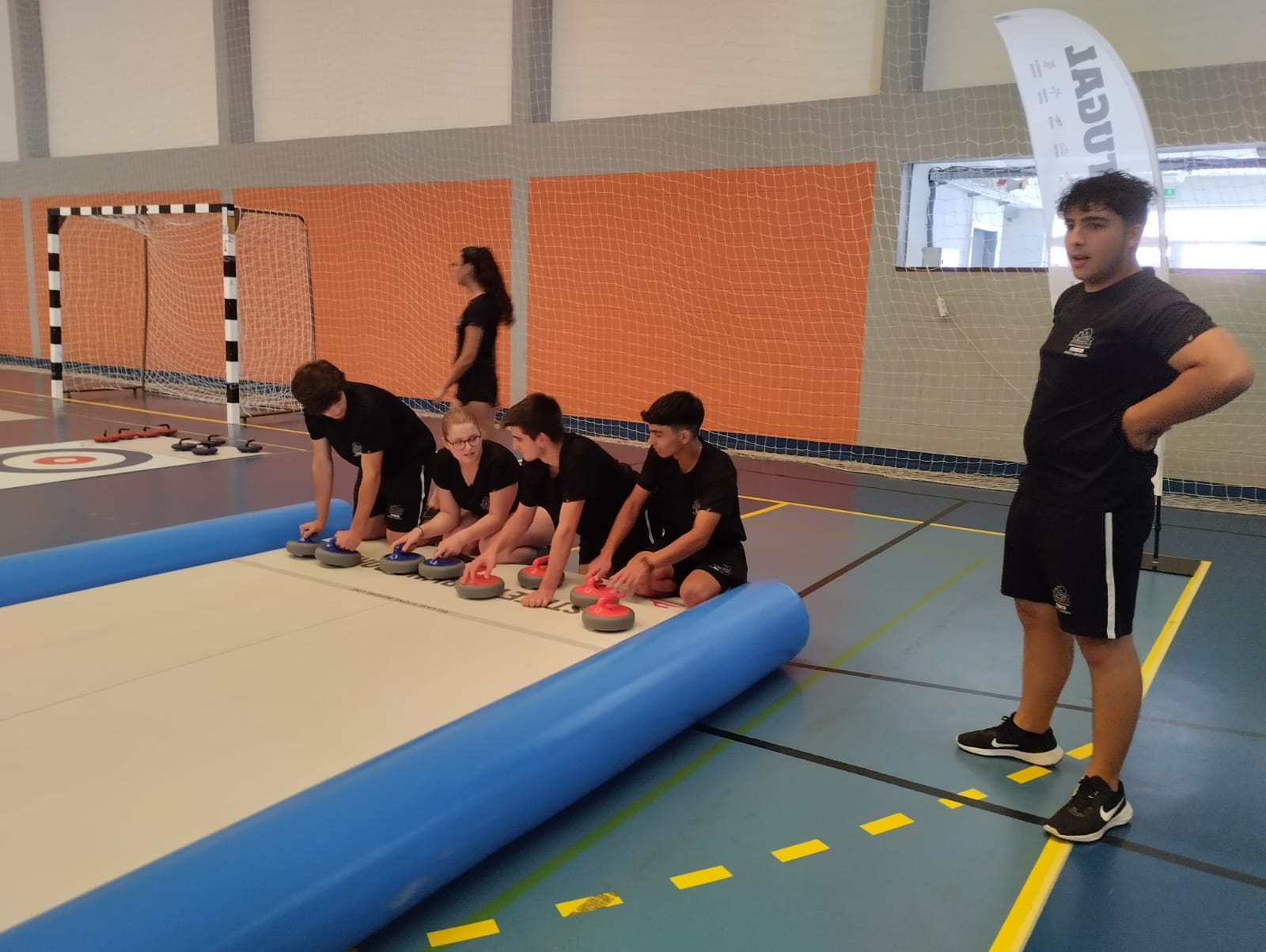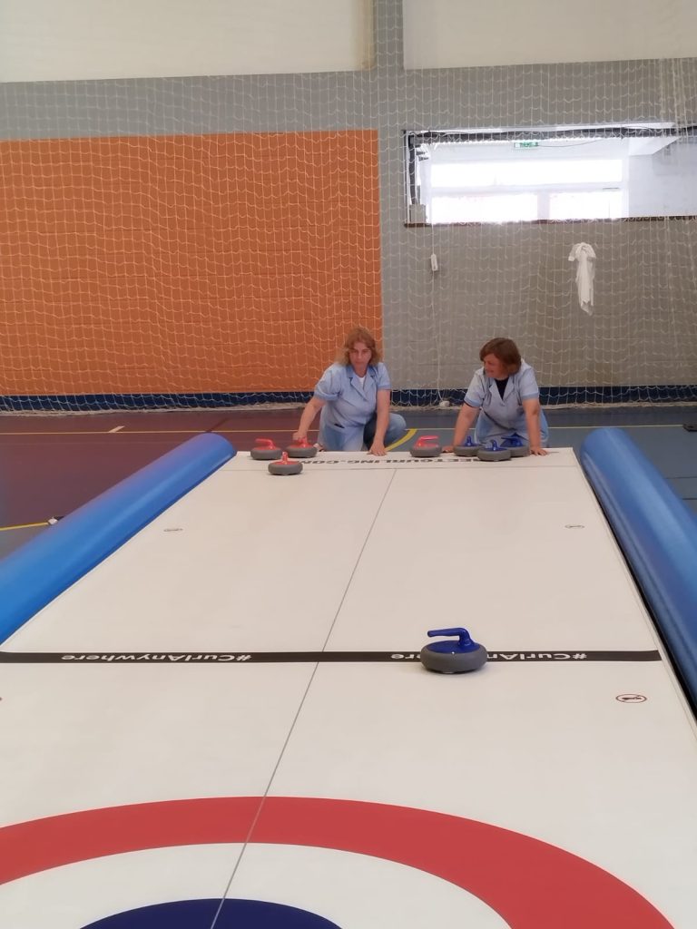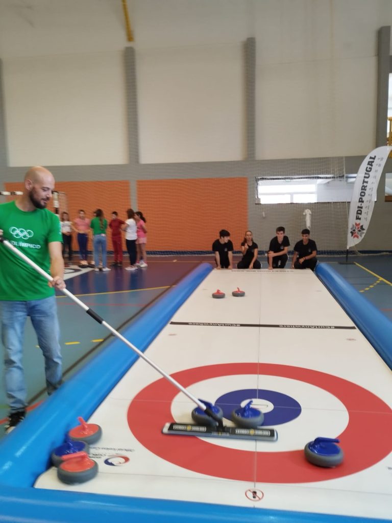 trouxeram-nos a modalidade Curling, esta atividade pertence aos desportos de inverno. O Curling é uma das de mais modalidades praticadas nos Jogos Olímpicos. Os alunos experienciaram jogar Curling, e aprenderam não só como jogar, mas também as regras desta modalidade.