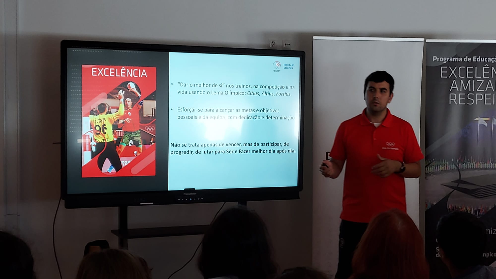 Joaquim Videira, praticante da modalidade de esgrima, trouxe uma aula aberta que permitiu aos alunos do 2º, 3º ciclo e secundário aprender os elementos básicos de esgrima, manuseando estes um kit de aprendizagem desta modalidade. Este elemento do Comité Olímpico Português, presenteou-nos com uma palestra sobre os valores olímpicos e deslumbrou a plateia quando mostrou a réplica da tocha olímpica dos Jogos Olímpicos de Inverno de PyeongChang de 2018.
