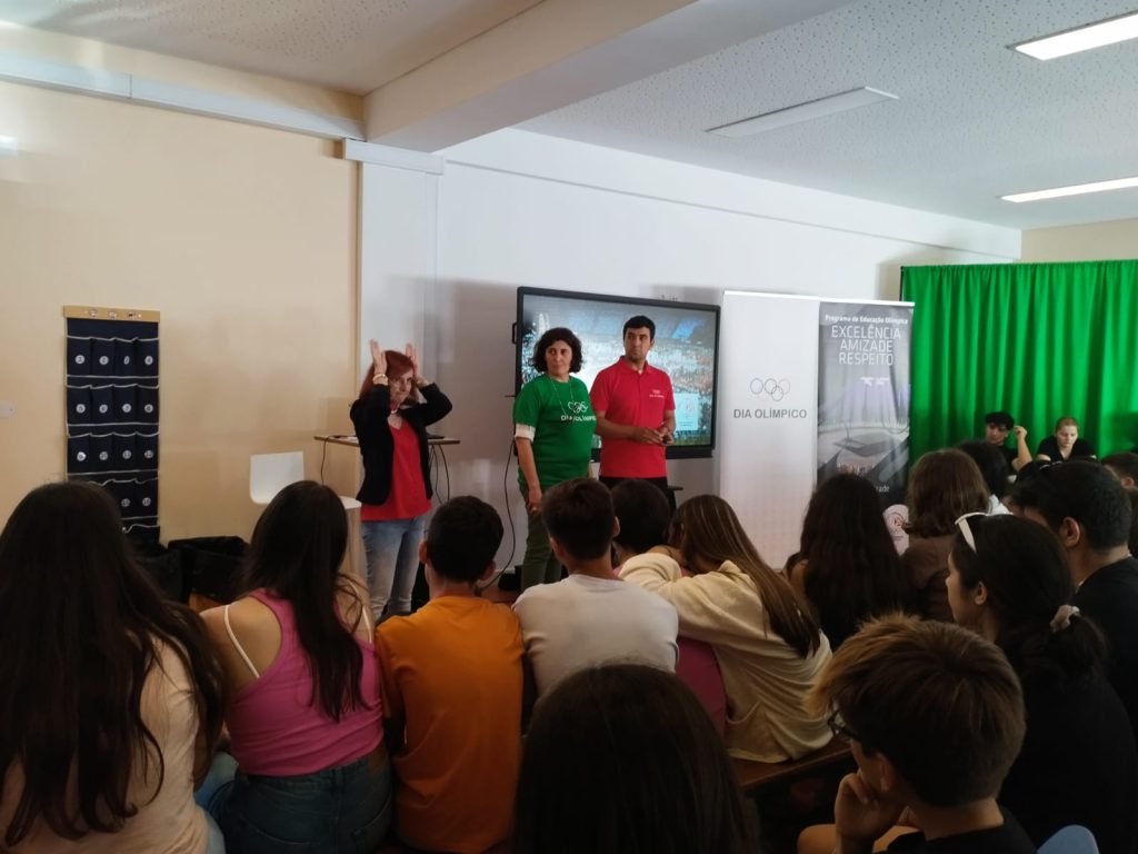No passado dia 1 de junho comemorou-se o Dia Olímpico no nosso Agrupamento. Esta atividade decorreu no âmbito do Projeto de Educação Olímpica, que trouxe à nossa escola um dos seus membros e três elementos da Federação Portuguesa de Desportos de Inverno.