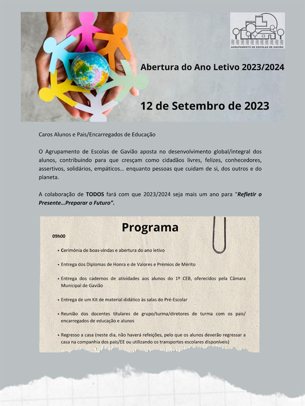 Agrupamento de Escolas de Gavião Programa do primeiro dia de aulas no Agrupamento de Escolas de Gavião 06/09/202306/09/2023 Programa do primeiro dia de aulas no Agrupamento de Escolas de Gavião