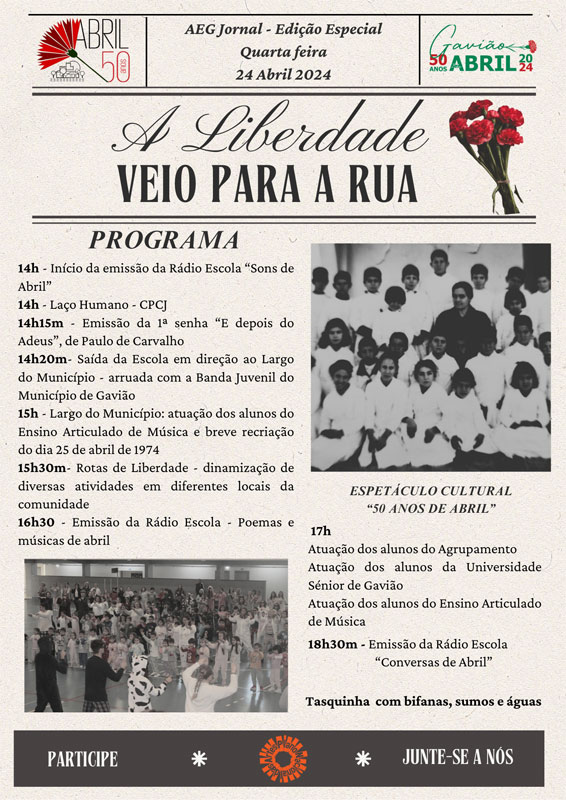 25 de Abril Comemoração dos 50 anos do 25 de Abril 22/04/202422/04/2024 Comemoração dos 50 anos do 25 de Abril