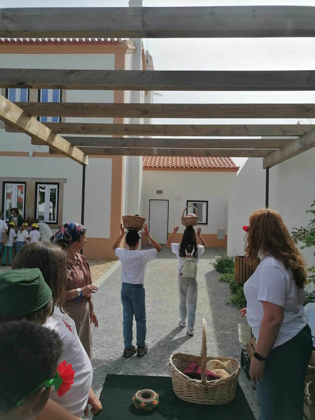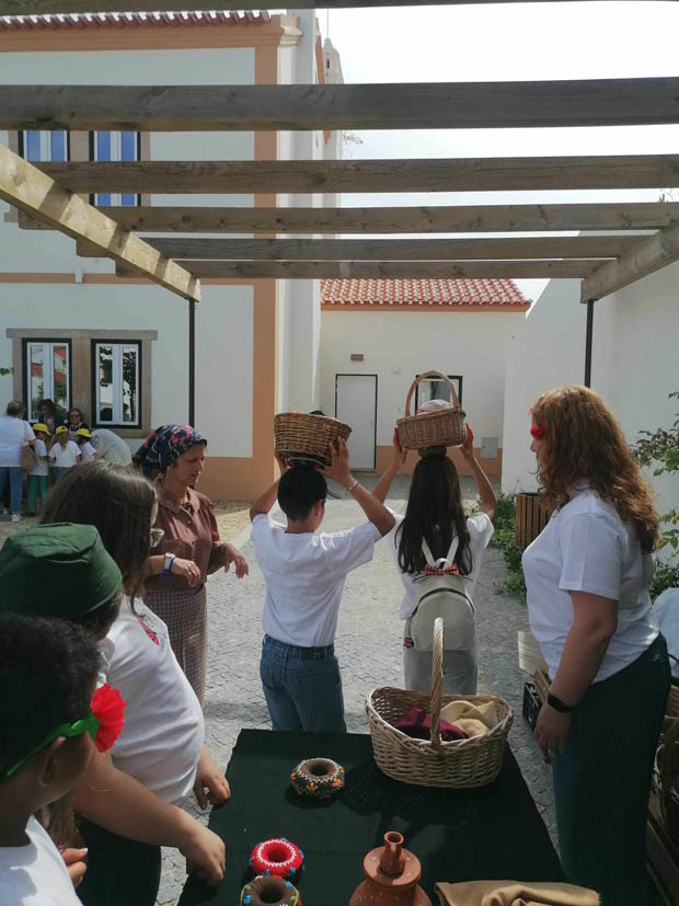 Aprender a fazer rodilhas (roda de tecido que se põe na cabeça para carregar objetos – cestos, cântaros…) e experimentar como era transportar cargas na cabeça.
