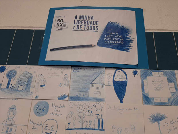 Integrado no Projeto Cultural de Escola, a convite do Plano Nacional das Artes 50 alunos do 2º, 3º Ciclos e Secundário participaram na elaboração de um mural digital em que tiveram que usar o lápis azul da censura para se expressarem.