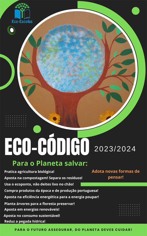 Na elaboração do Poster Eco-Código pretendeu-se ser coerente com o princípio da sustentabilidade e, por isso, reutilizou-se um painel realizado no Dia Mundial do Ambiente e Dia Eco-Escola em que se realizaram diversas atividades com cariz ambiental, sendo uma Manifestação pelo Planeta a mais impactante na comunidade local.