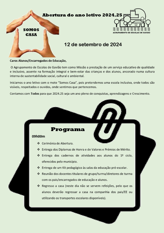 Agrupamento de Escolas de Gavião Abertura do Ano Letivo 2024/25 09/09/202409/09/2024 12 de Setembro de 2024