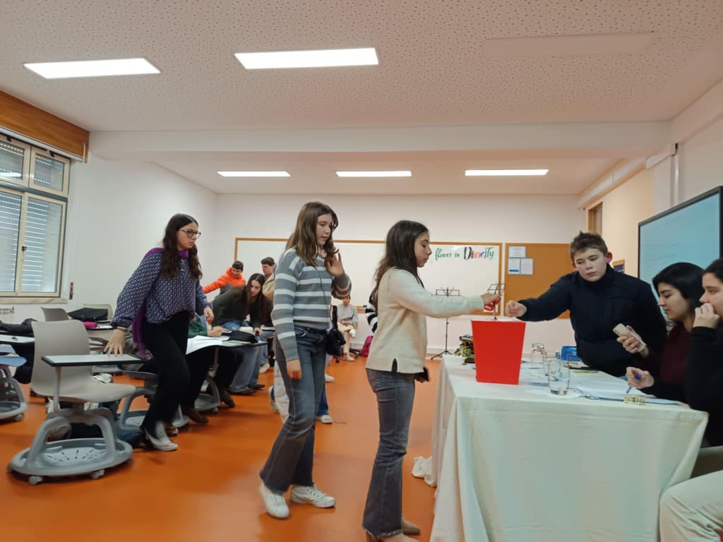 Os jovens elegeram os candidatos para dirigirem os trabalhos, apresentaram e debateram as medidas dos projetos de recomendação, elegeram os deputados efetivos e suplentes que representarão a escola na sessão distrital. Foram eleitas as deputadas Margarida Chambel, Carlota Lourenço, Mariana Heitor, Margarida Vieira e o deputado Nicolas Laurentino. A candidata eleita à presidência da mesa da sessão distrital foi a deputada Carlota Lourenço.