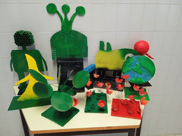 Os trabalhos realizados, tiveram porreferência as obras do artista BordaloII e artista plástico local, Luís Rodrigues.