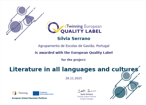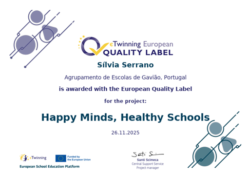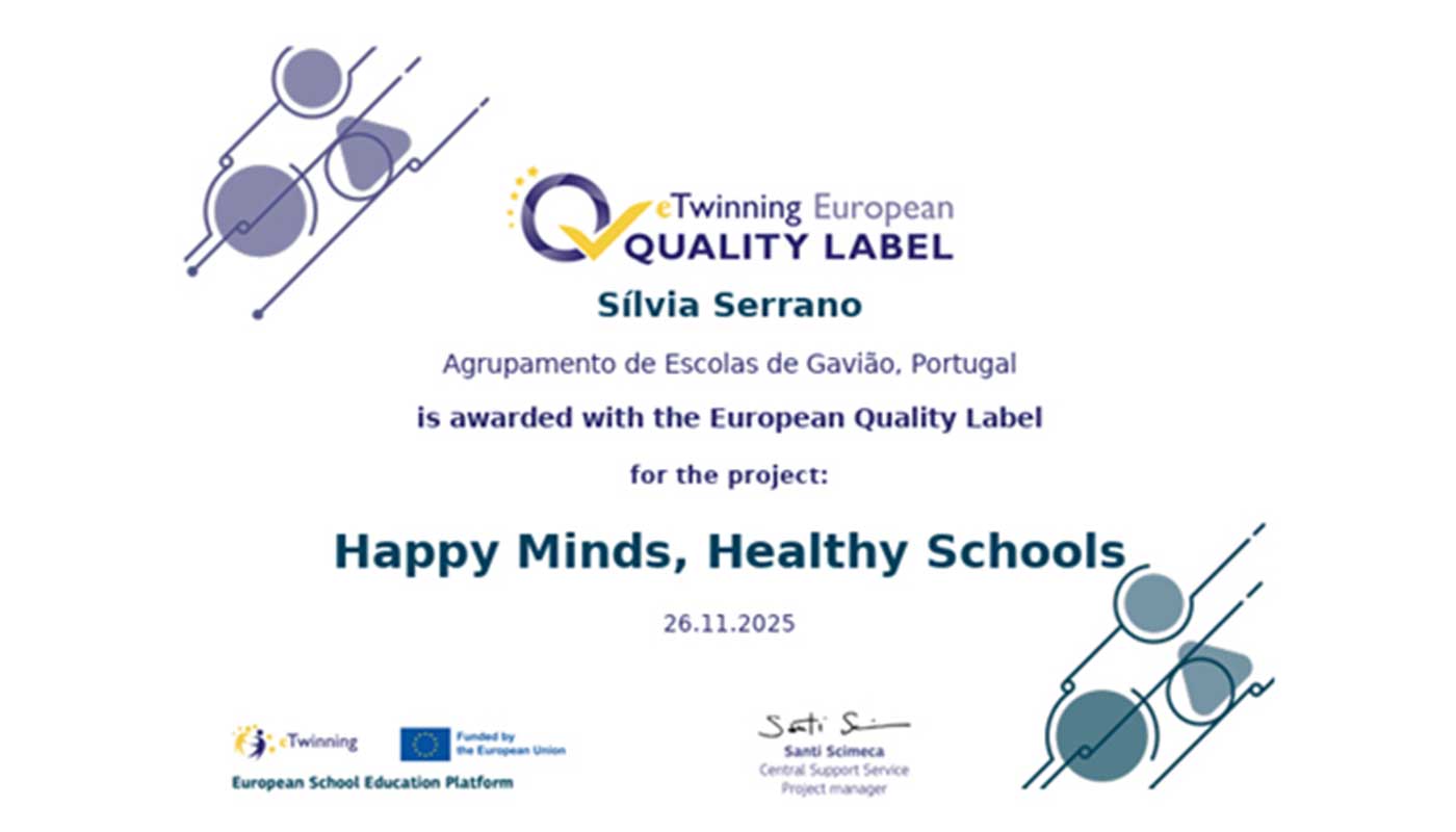 É com enorme orgulho e alegria que anunciamos que o Agrupamento de Escolas de Gavião foi distinguido com dois Selos Europeus de Qualidade eTwinning, reconhecimento que celebra o nosso trabalho colaborativo, criativo e verdadeiramente europeu.
