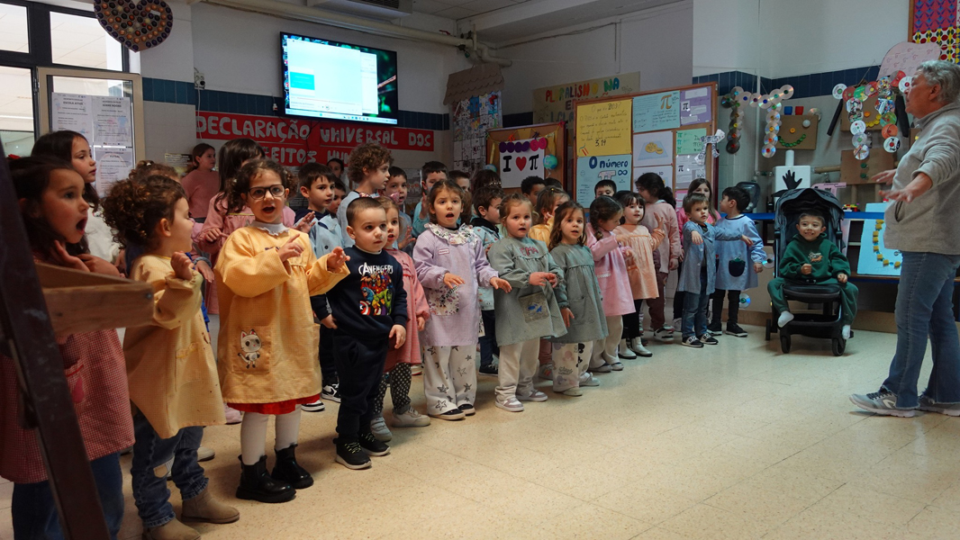 A visita teve início de forma especialmente acolhedora, com as crianças da Educação Pré-Escolar a encantarem todos os presentes com um conjunto de canções, sob a orientação da docente de música. Um momento ternurento e cheio de significado, que refletiu a alegria e o talento dos nossos mais pequenos.