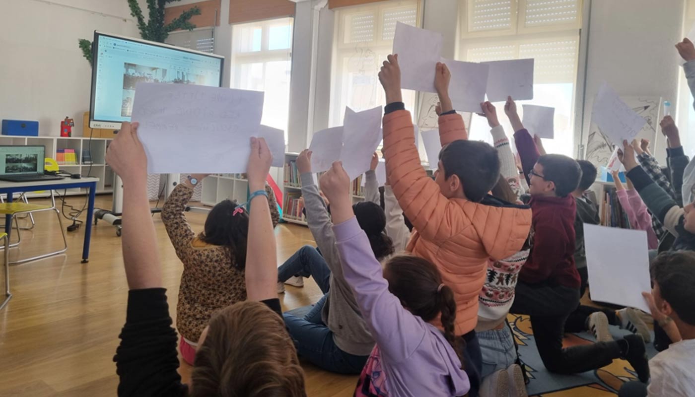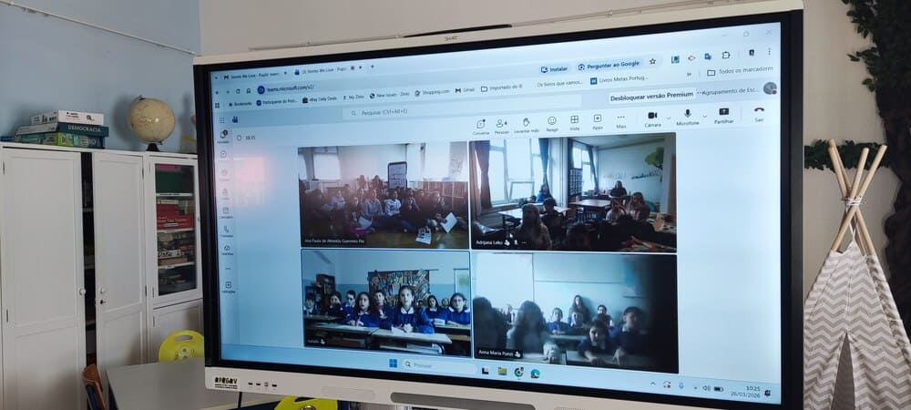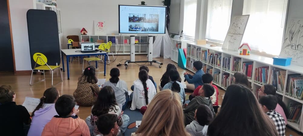 No âmbito do projeto eTwinning Stories We Love, desenvolvido com os alunos do 4.º ano pelas docentes Sílvia Serrano, Ana Santos, Paula Pio e Paula Mendes, realizou-se, na Biblioteca Escolar, um encontro em videoconferência com escolas de Itália (Viterbo e Puglia) e da Croácia (Osijek).