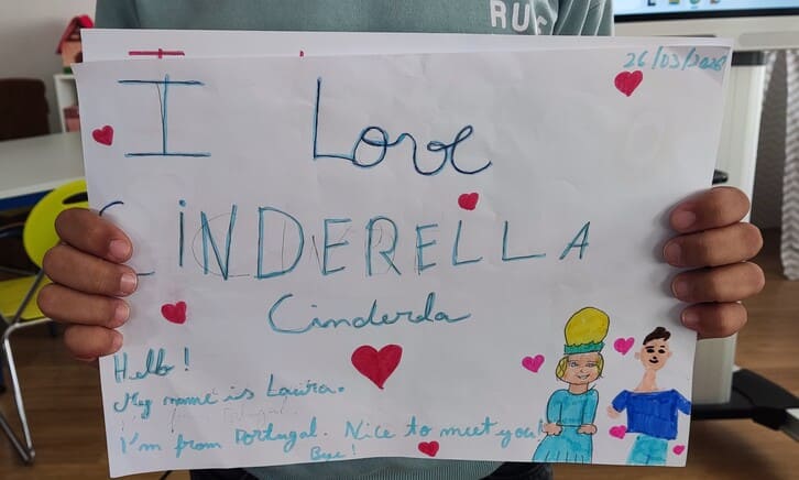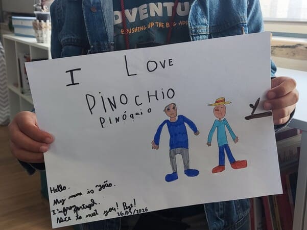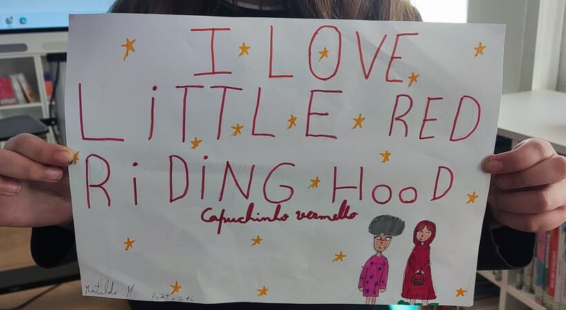 A sessão iniciou-se com a apresentação de um grupo de alunos, que disseram os seus nomes e partilharam as histórias de que mais gostam. De seguida, um segundo grupo apresentou títulos de contos tradicionais, dizendo-os em inglês e na sua língua materna, num momento rico de partilha cultural e linguística.