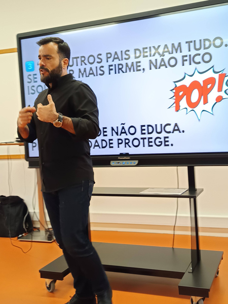 E ontem, ao final da tarde, juntamos pais, assistentes operacionais e alguns docentes numa sessão com o Psicólogo educacional Alfredo Leite .